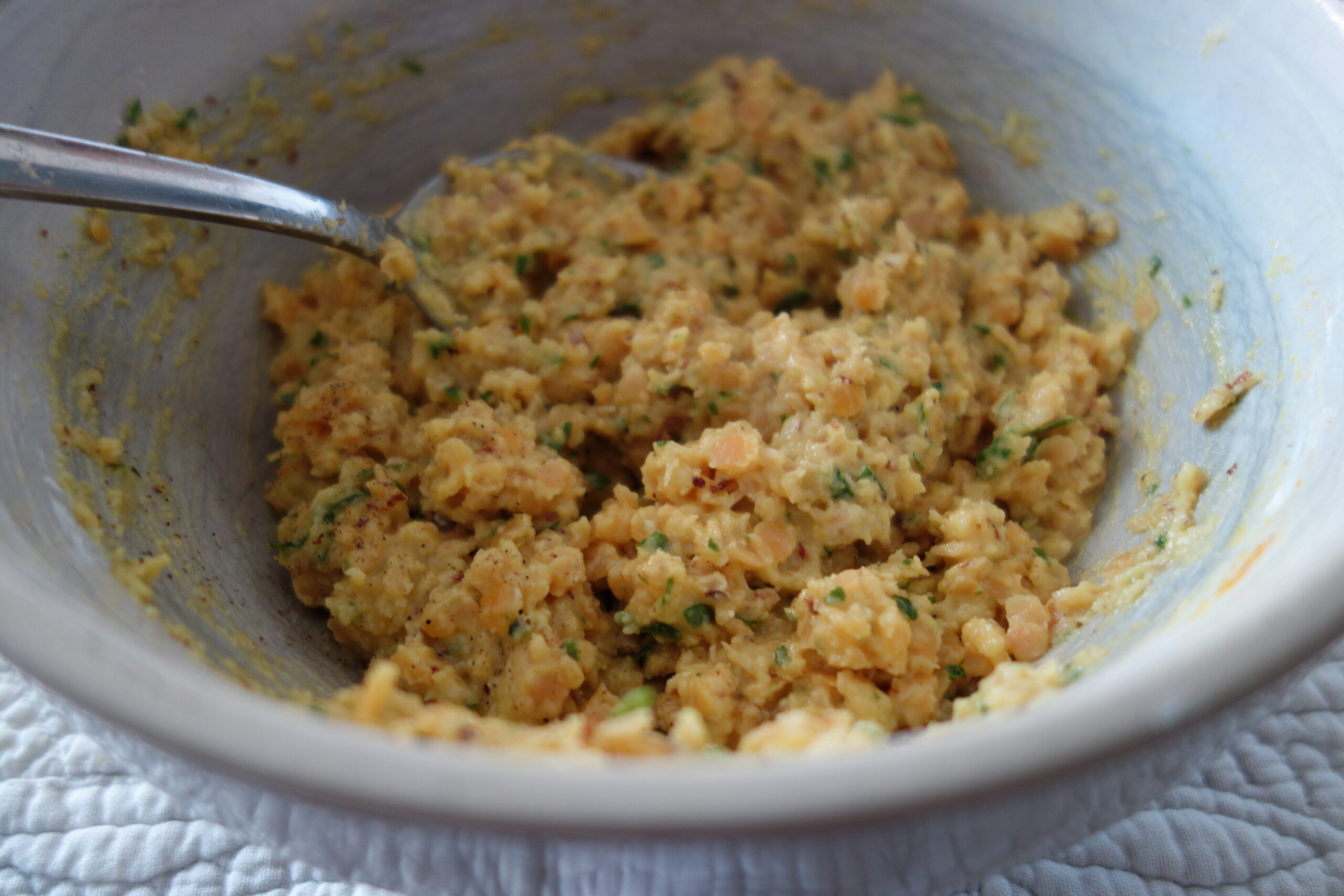 Egouttez-les parfaitement et versez dans un saladier. Ajoutez l’oeuf battu, la Maïzena, le parmesan, le curry, l’échalote, le persil et les noisettes hachées. Salez et poivrez. Formez des boules et aplatissez-les.