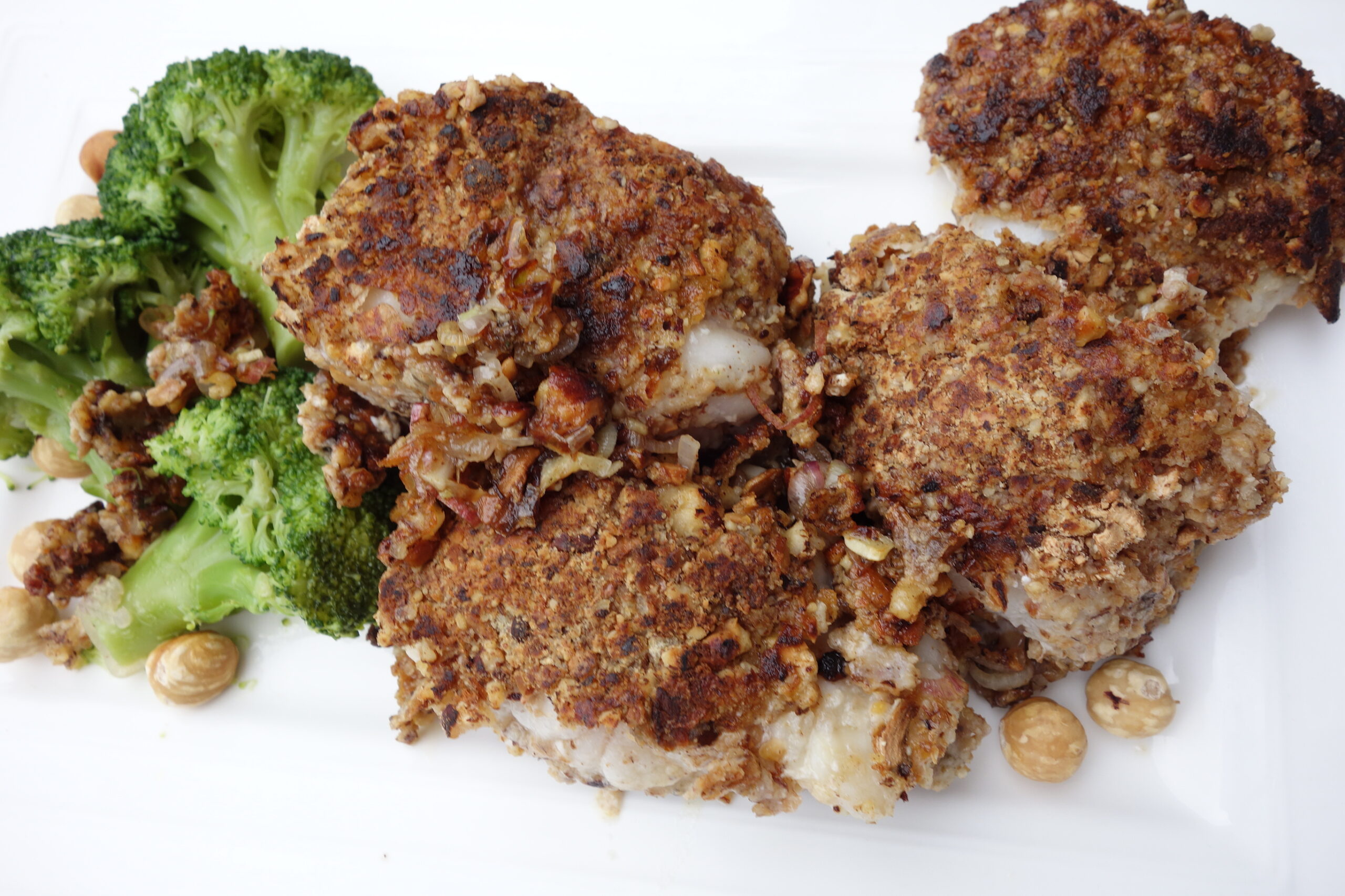 Ce plat de Lotte panée aux Noisettes et Cèpes est une recette spécial fêtes car les saveurs de ce plat avec sa panure croustillante à souhait révèle le coeur tendre de ce délicieux poisson.