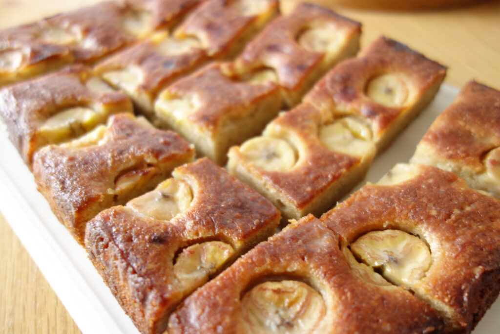 First, here is the list of the different ingredients you will need to prepare the Sticky Toffee Banana Cake that serves about 16 squares